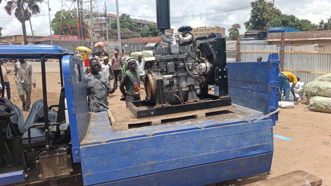 Receiving, inspecting and loading equipment bound for our Haut-Uélé sites: diesel engine, welding generator, batteries and accessories. A concrete step in the modernization of our production tooling.